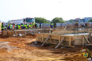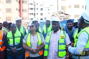 At Community 1, Tema, Hon. Minister toured the Site 1 Pavilion project, set to serve as an event center. He then assessed progress on the Kaiser Flats at Tema Community 4, where 240 modern two-bedroom apartments are currently under construction. These project forms part of a broader effort to replace aging infrastructure with safer, more resilient residential facilities, he stated.